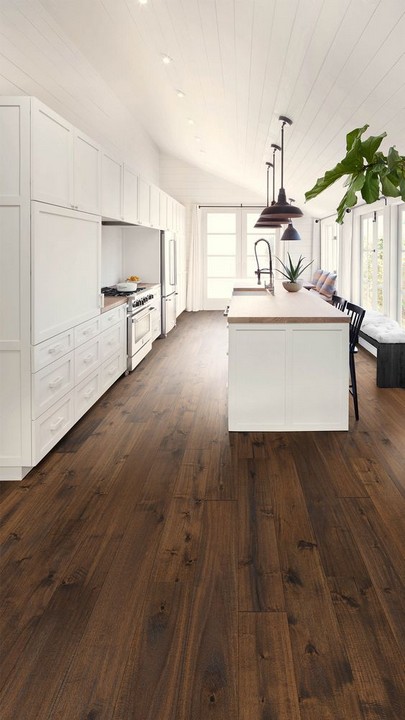 – Dark wood floors create a dramatic contrast and work well in contemporary and elegant interiors.