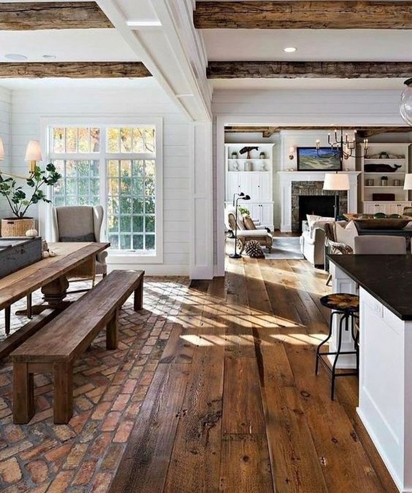 – Gray or whitewashed wood flooring creates a beachy, coastal, or contemporary look.