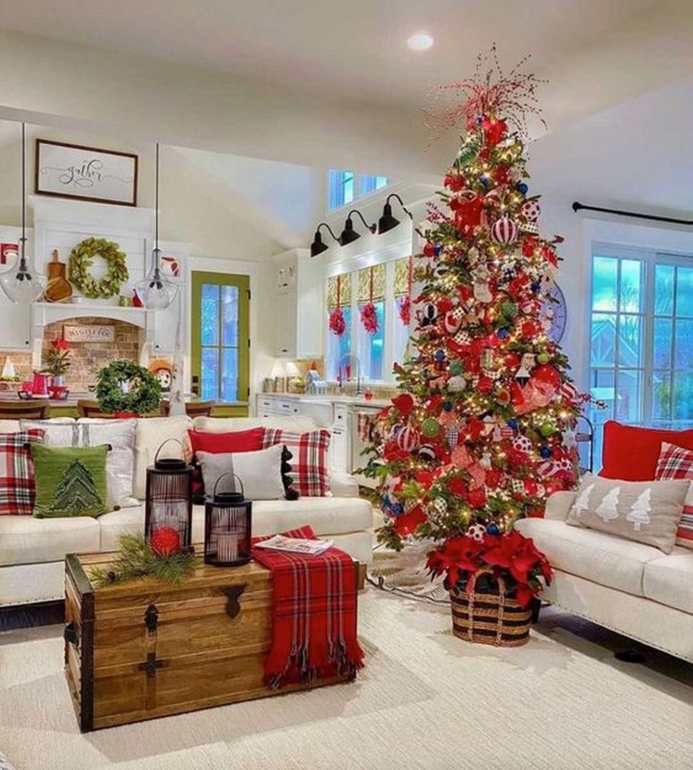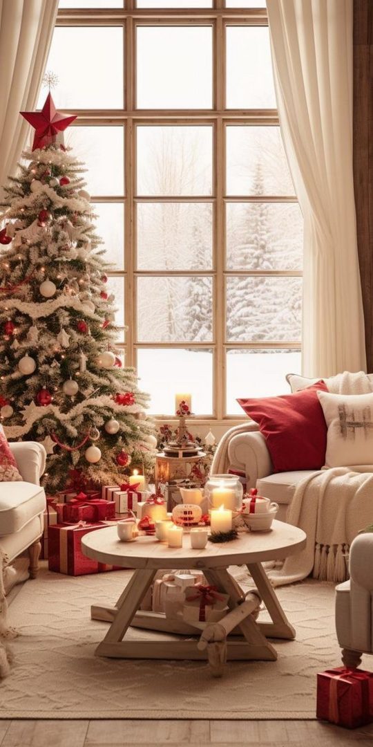 Creating a traditional red and green Christmas living room is a festive and classic way to celebrate the holiday season. Here are some ideas to help you achieve a warm and inviting Christmas look: