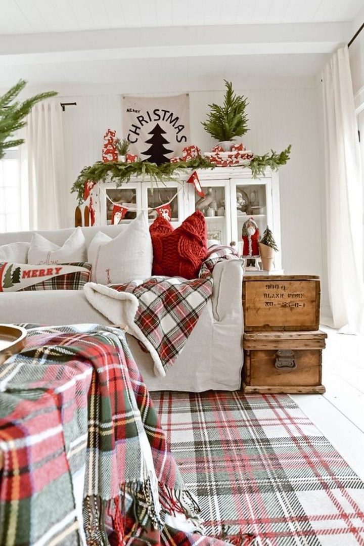 Introduce red and green plaid or tartan patterns through area rugs, throws, or even tablecloths.