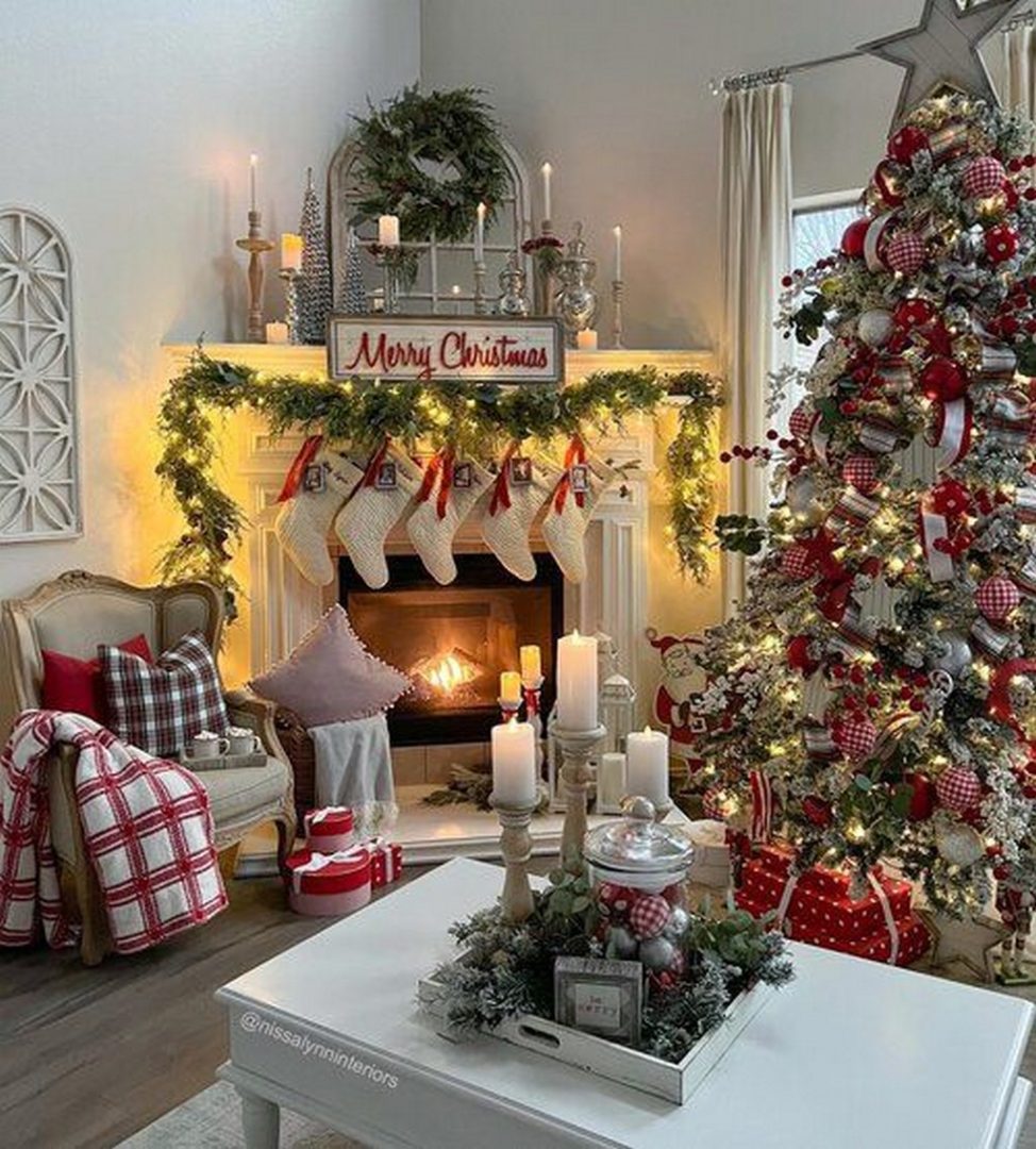 Remember to balance the red and green elements throughout the room for a cohesive look. Feel free to mix in metallics like gold or silver for an extra touch of elegance. Personalize the decor to match your taste while keeping the traditional Christmas color scheme prominent.