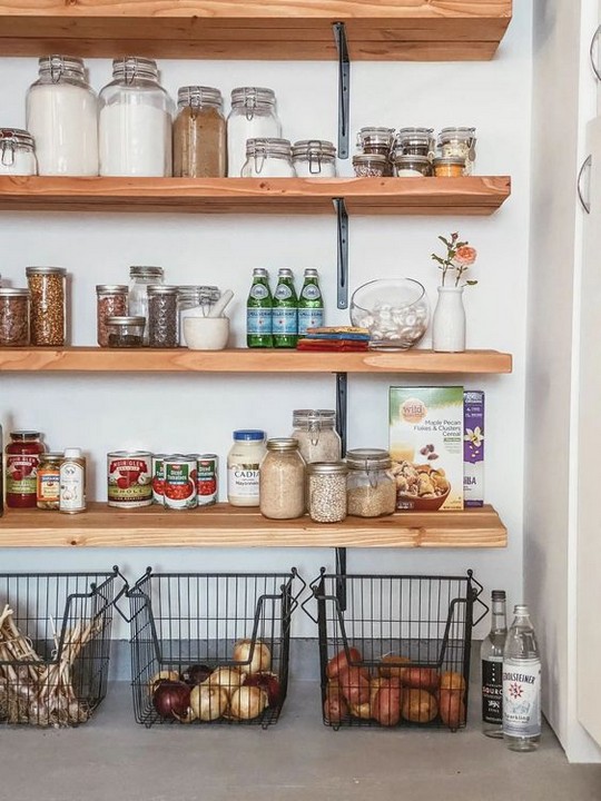 Replace traditional pantry doors with open shelves. This makes it easy to see and access pantry items while adding a stylish touch.