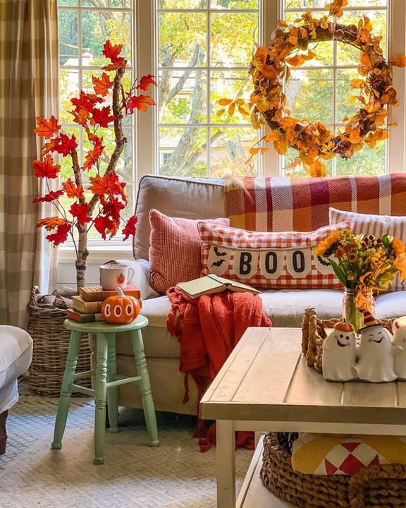 Change out your throw pillow covers and blankets for ones with fall-inspired patterns, such as plaid, tartan, or leaf motifs.
