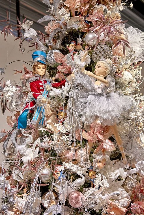 Decorate with nutcracker ornaments, ballet slipper accents, and royal blue and gold colors.