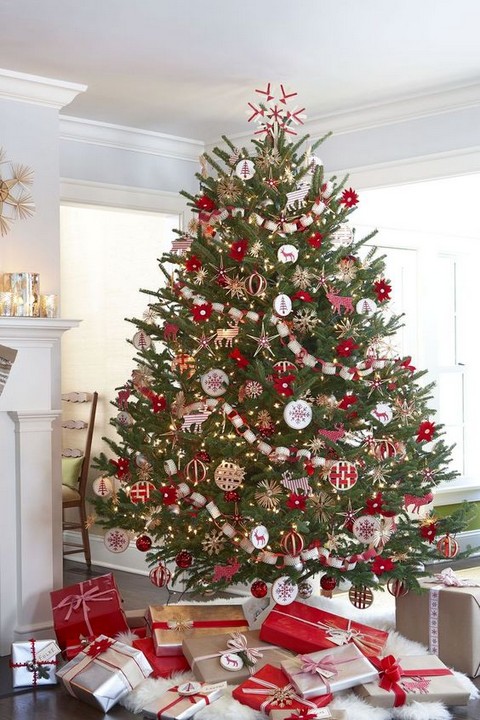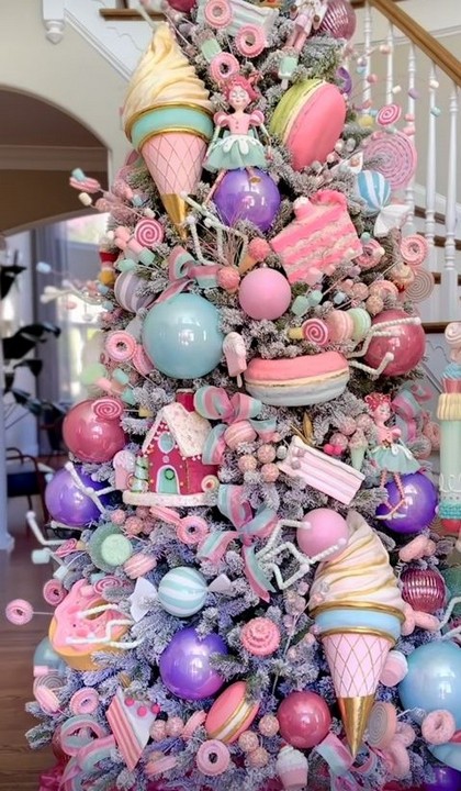 Decorate with colorful candy-inspired ornaments and garlands. Hang candy canes and gingerbread ornaments for a sweet and playful tree.