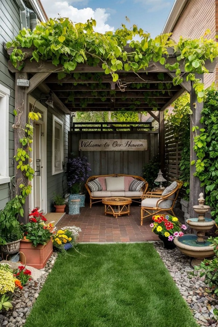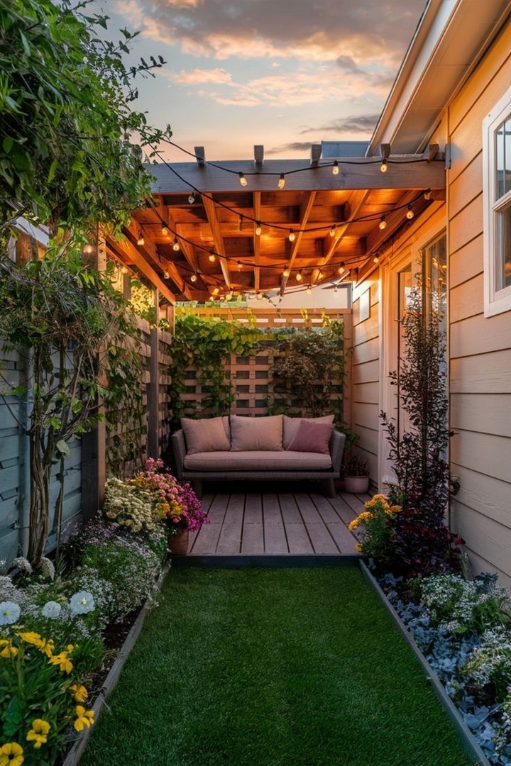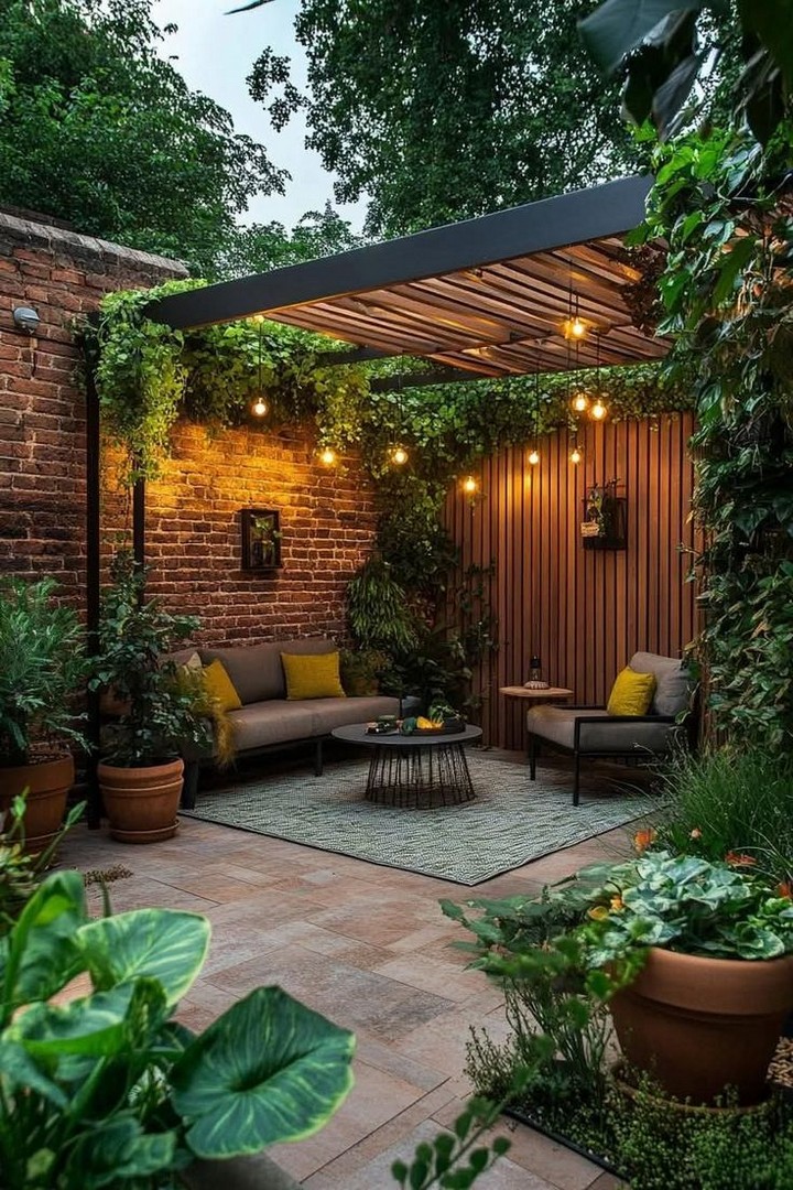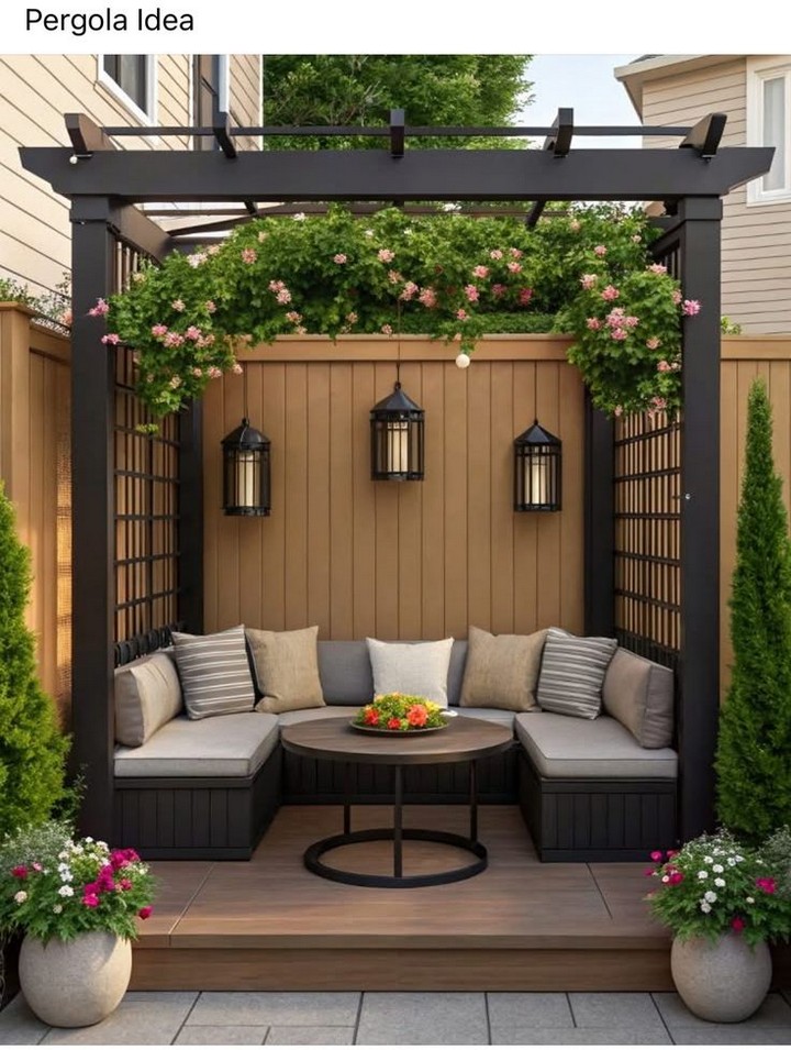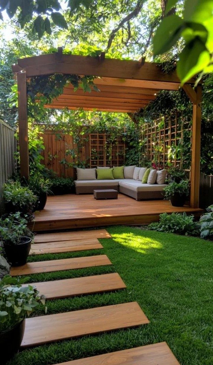 A pergola can instantly elevate the aesthetic of your small backyard while providing much-needed shade. Choose a compact design that fits your space and consider adding climbing plants like ivy or wisteria for a natural, green canopy. You can even hang outdoor curtains or string lights to further enhance the ambiance. A retractable canopy or shade screen is a great addition to provide adjustable coverage during sunny days.