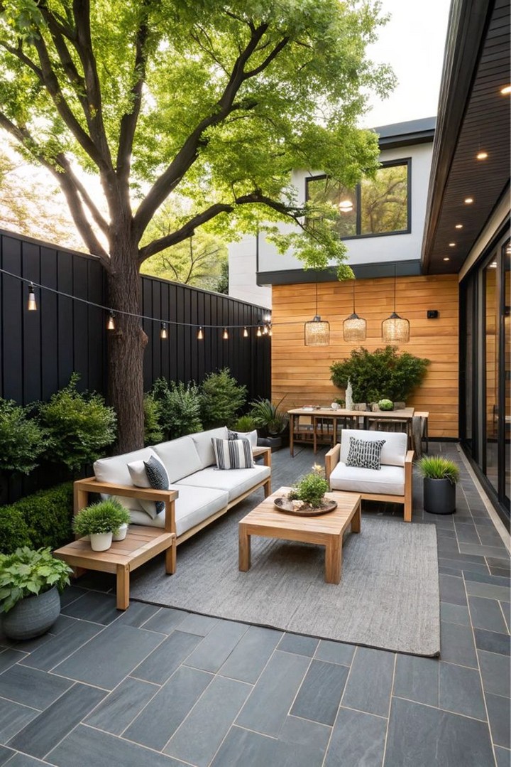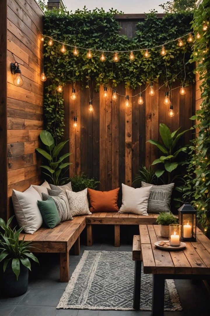 If relaxation is your goal, creating a cozy lounge area is essential. A daybed or a small sectional sofa can provide a comfortable, stylish spot to unwind. Add plush cushions, soft throws, and perhaps a small coffee table for the perfect outdoor retreat. Position your lounge near lush plants or under a pergola for additional privacy.