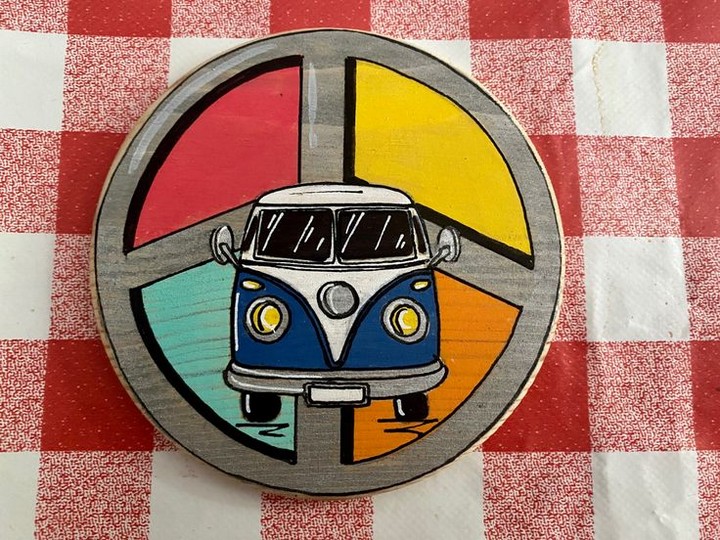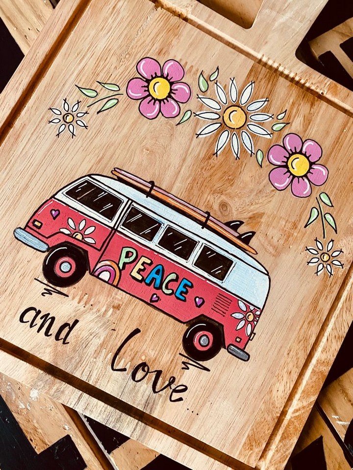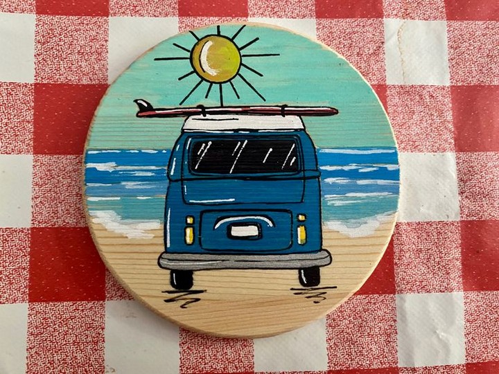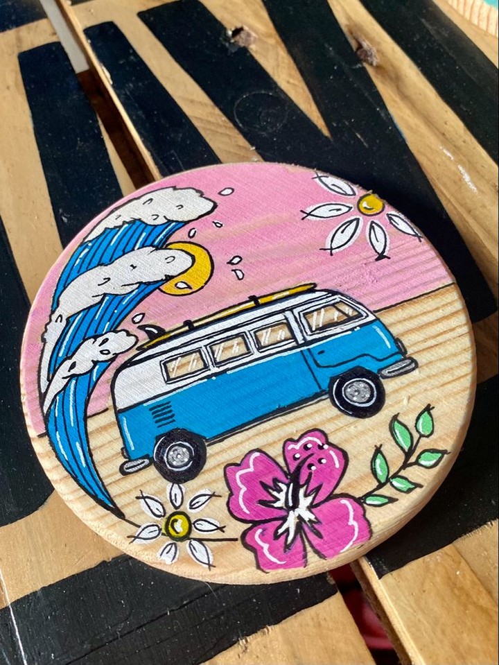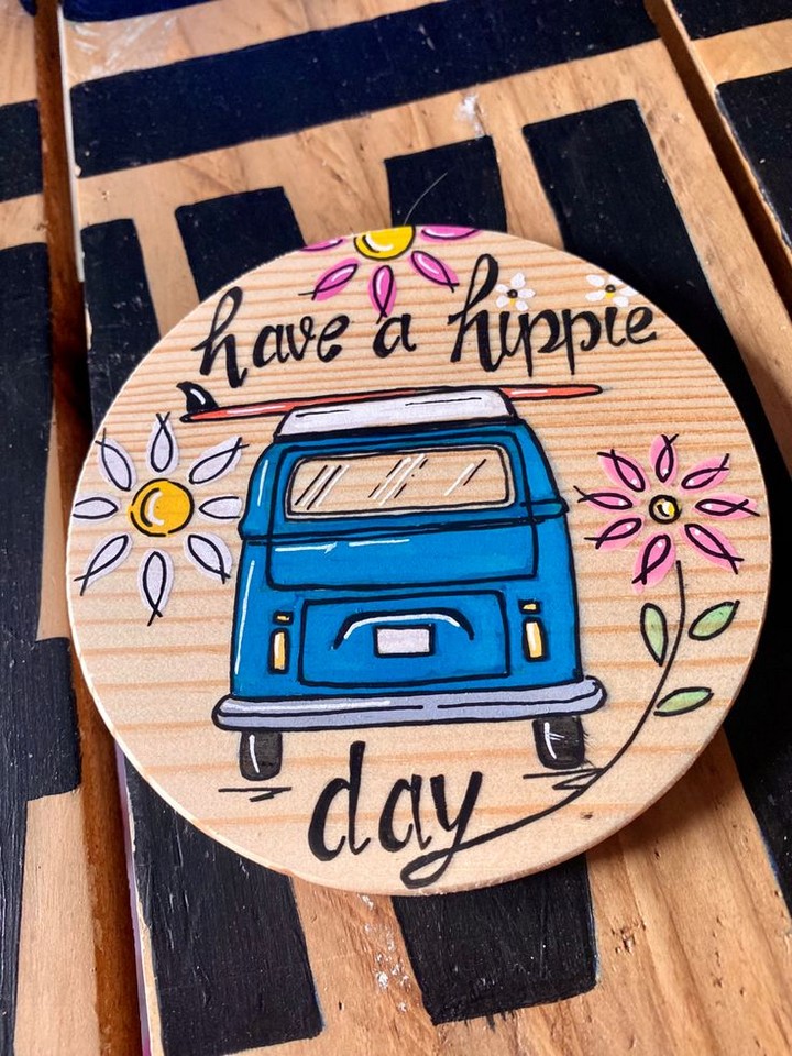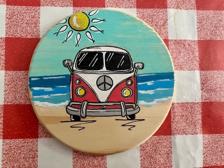 Materials Needed: Medium wooden slice (8-10 inches), acrylic paints, paintbrushes, sealant, twine for hanging.