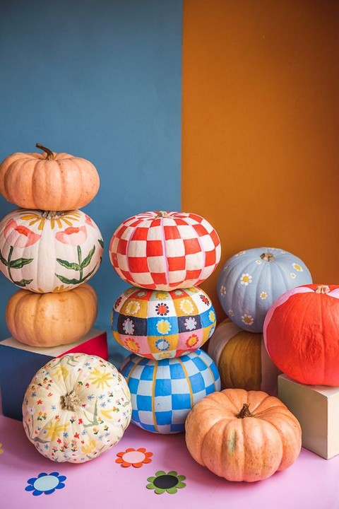 Paint elegant floral patterns or intricate mandalas on your pumpkins for a touch of natural beauty.