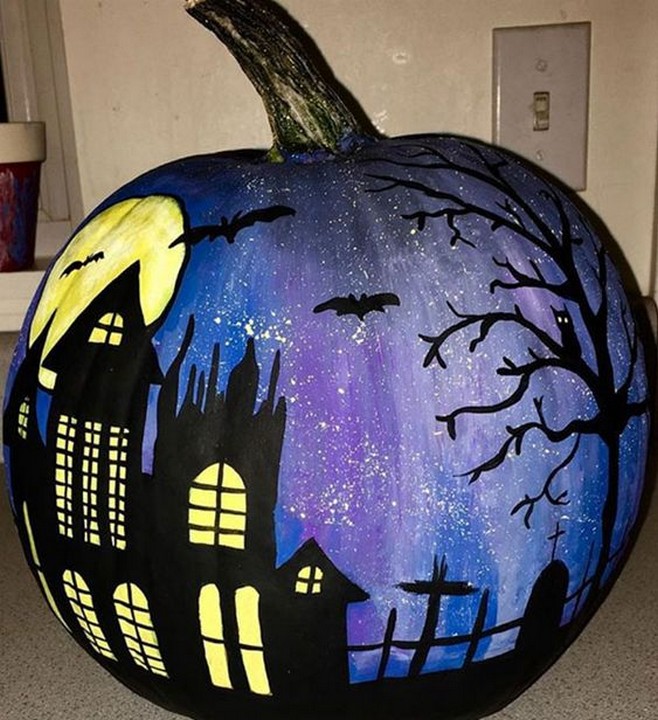 Use dark blues, purples, and blacks to create a galaxy-themed pumpkin. Add stars and planets for an out-of-this-world look.