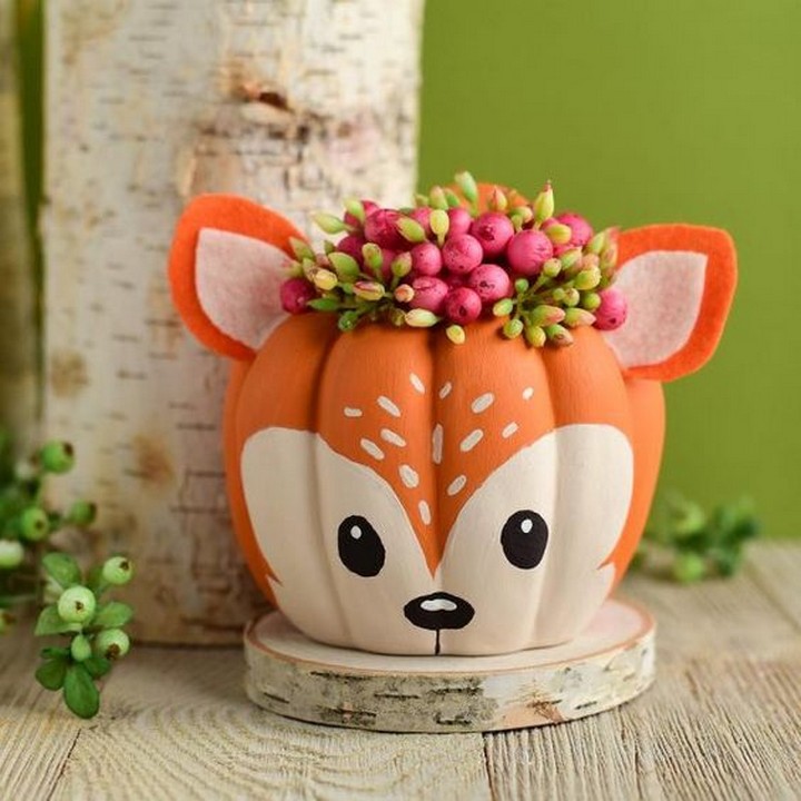 Paint your pumpkins to resemble animals like cats, owls, or foxes. You can even add 3D ears or horns to make them more lifelike.