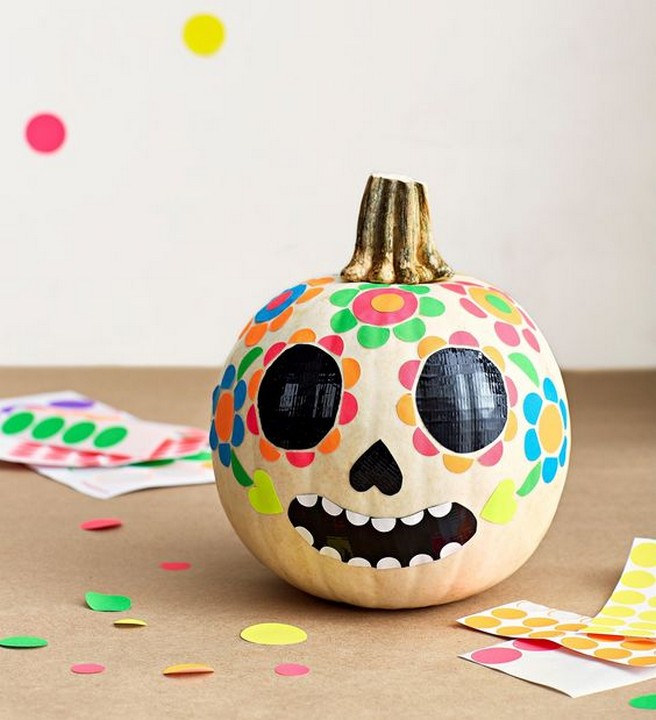 Create intricate and colorful sugar skull designs on your pumpkins to celebrate Dia de los Muertos.