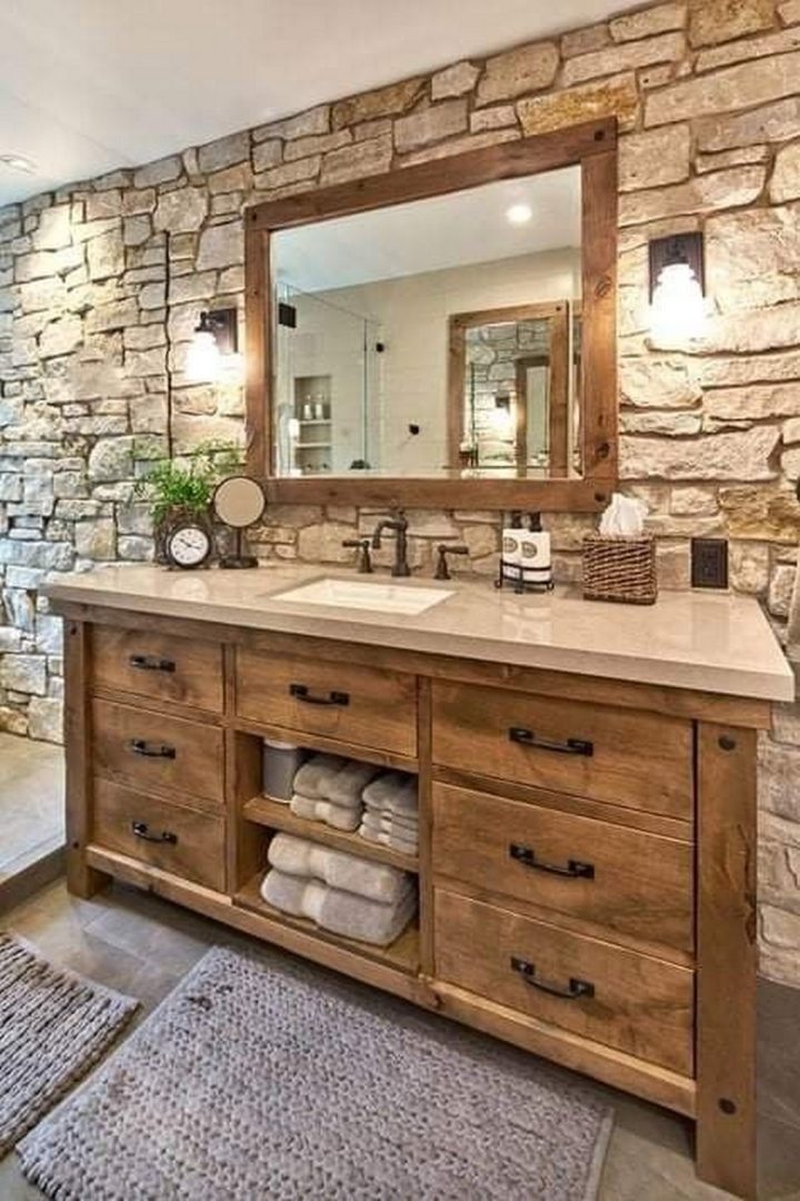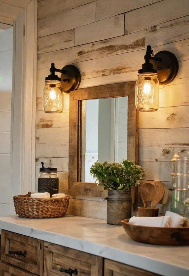 Design the bathroom with rustic elements such as a clawfoot tub, wooden vanities, and vintage-inspired fixtures.