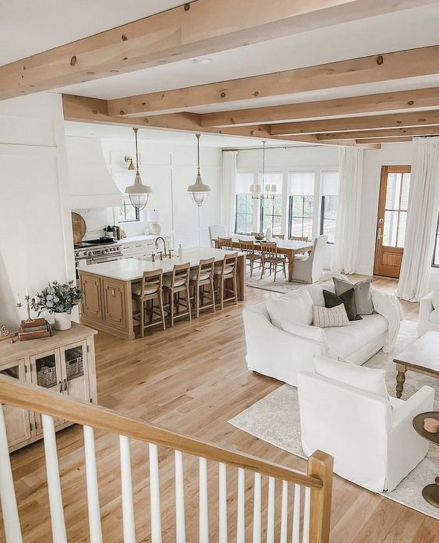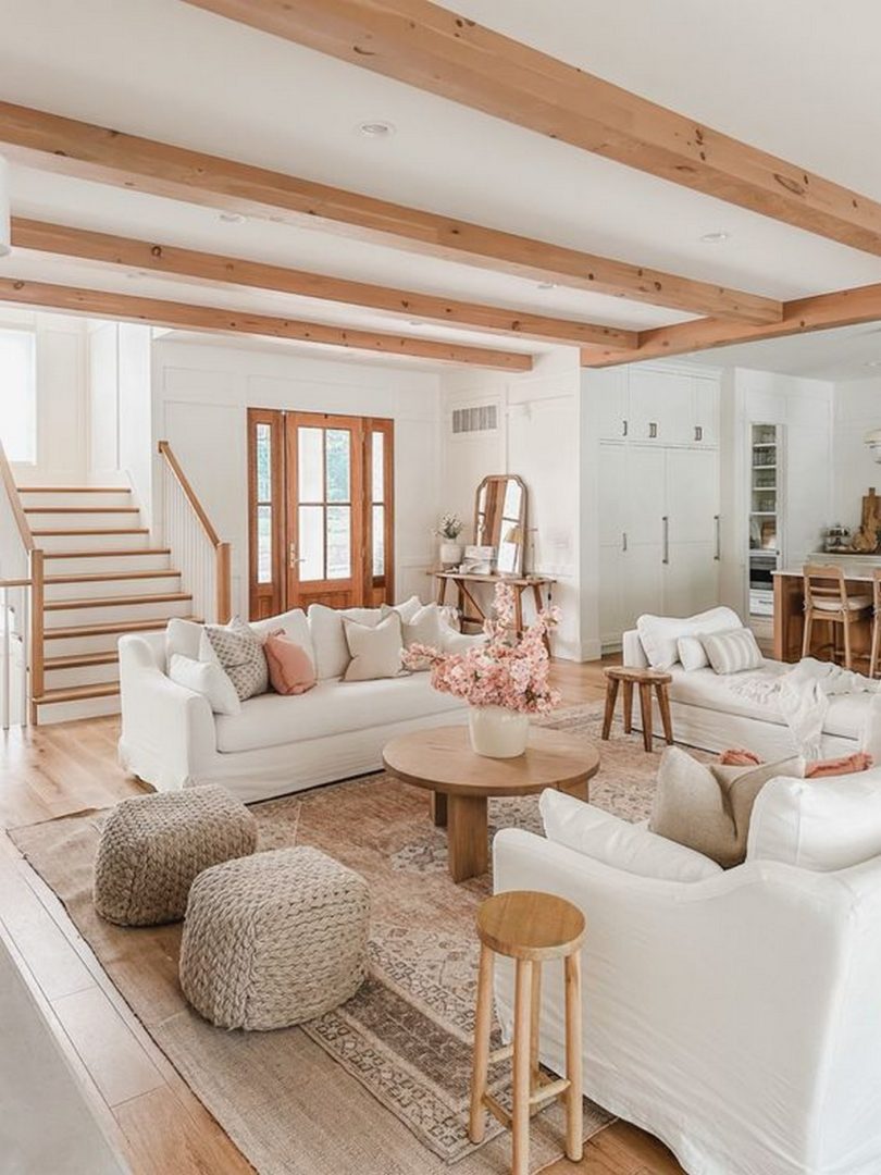 Embrace the rustic charm by leaving wooden beams exposed. This adds character and warmth to the living space.
