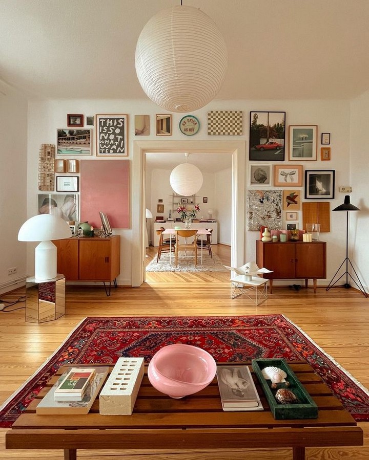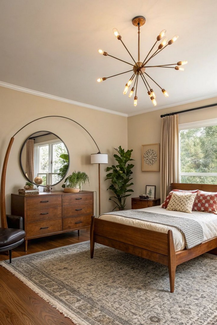 Combine mid-century modern furniture with eclectic decor like colorful cushions, abstract art, and quirky lighting. Mix wood tones with metallic accents for contrast.