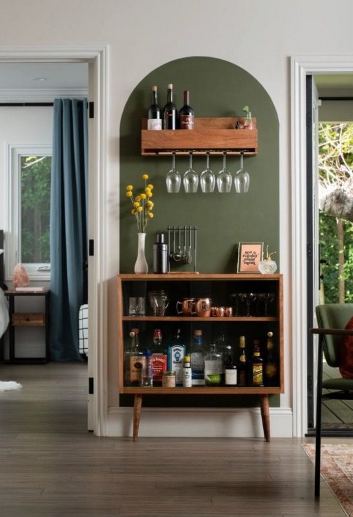 Elevate your home bar with Art Deco-inspired details. Use a modern bar cart with metallic accents and pair it with eclectic glassware and vintage cocktail accessories.