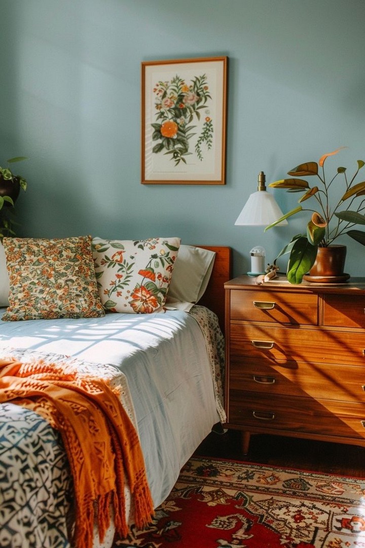 Create a serene bedroom by blending Scandinavian simplicity with boho textures. Pair minimalist furniture with cozy elements like woven blankets, macramé wall hangings, and rattan furniture.