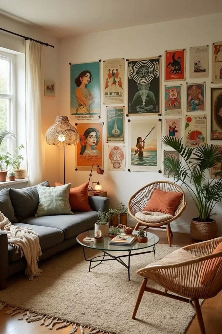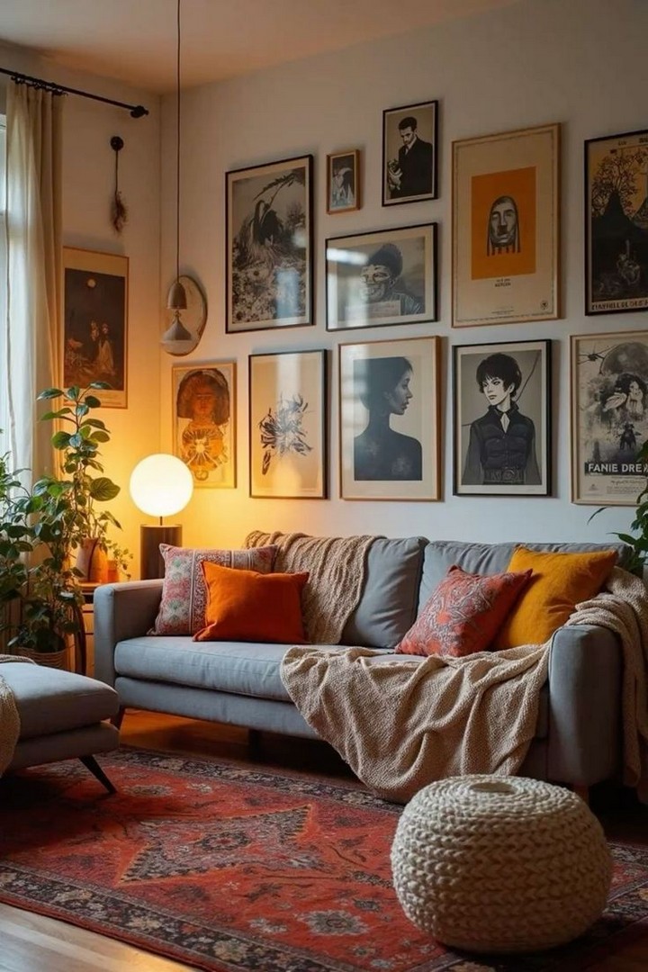 A gallery wall is a quintessential element in eclectic spaces. Mix and match modern frames with vintage art, photographs, and typography. Combine different frame sizes and orientations for visual interest.