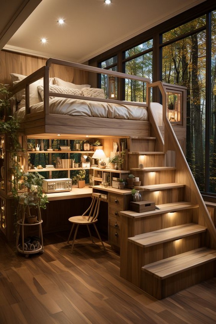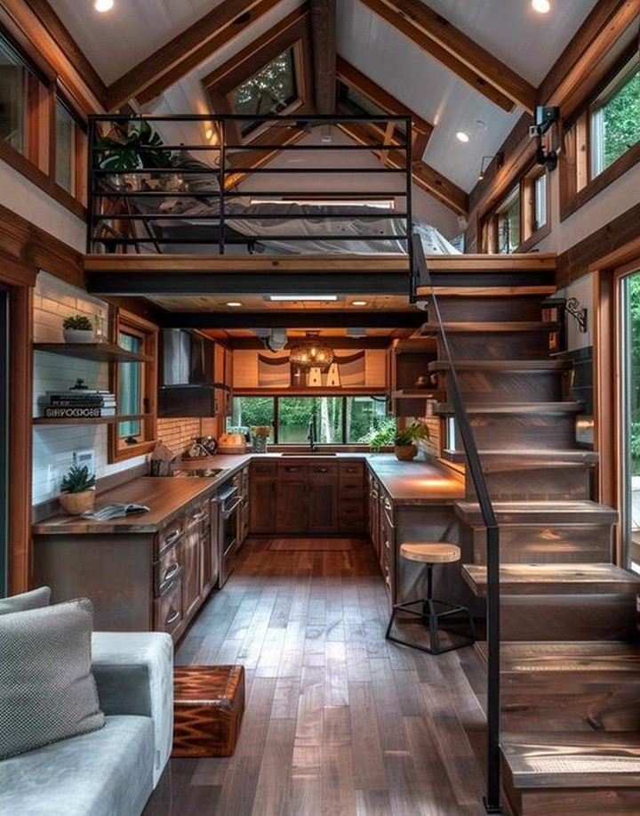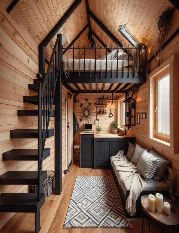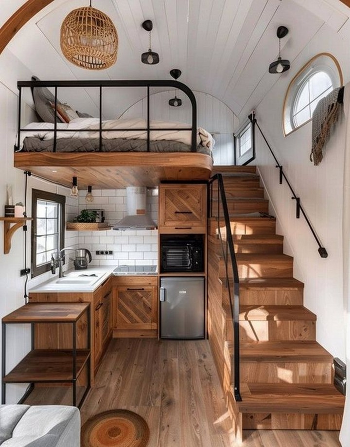 While the open concept design of tiny houses fosters a sense of togetherness, it’s important to have designated spaces that offer privacy and personal retreat. Consider adding curtains, screens, or sliding doors to the loft area to create a visual and acoustic separation from the rest of the living space. This ensures that the loft bedroom remains a tranquil sanctuary despite its proximity to other functional areas.