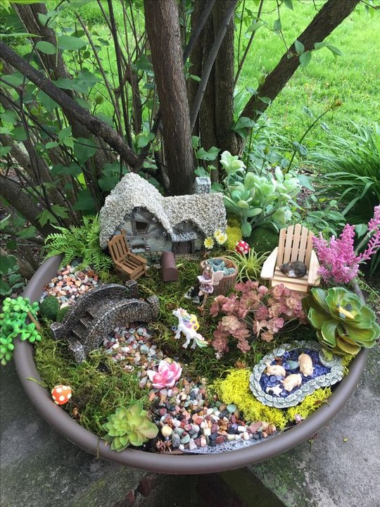 Change the decor of your fairy garden with the seasons. Add mini pumpkins for fall, tiny snowmen for winter, and blooming flowers for spring.