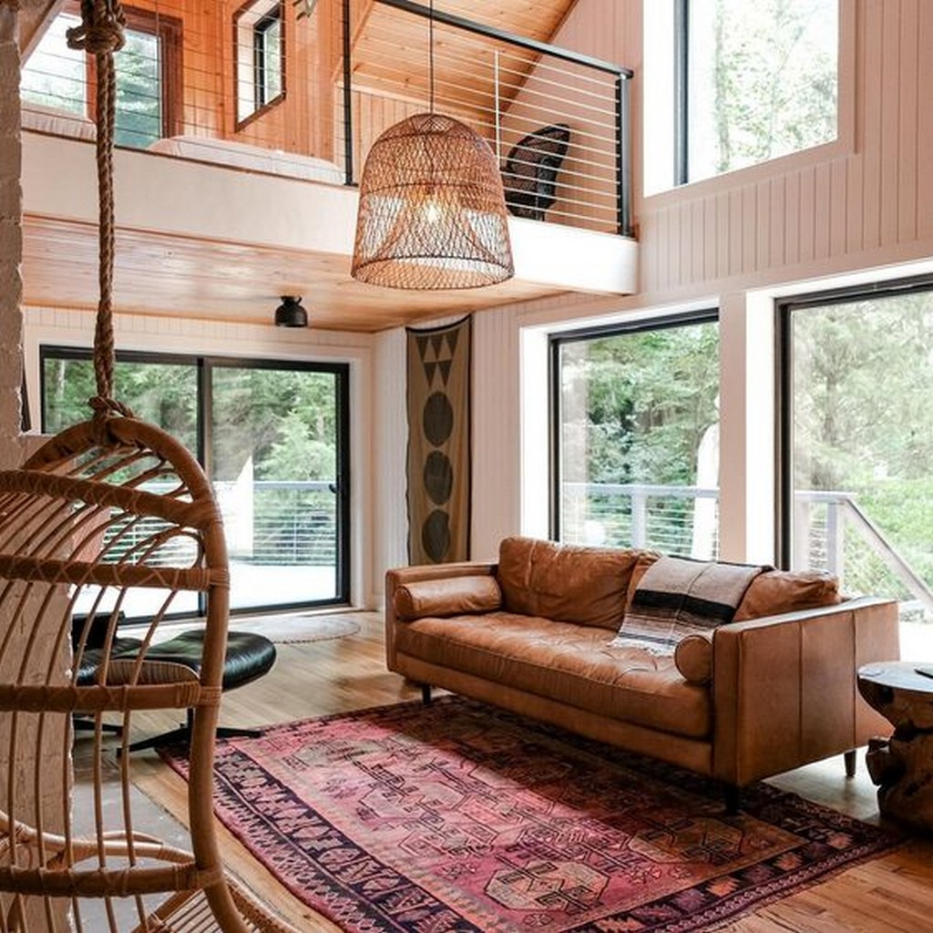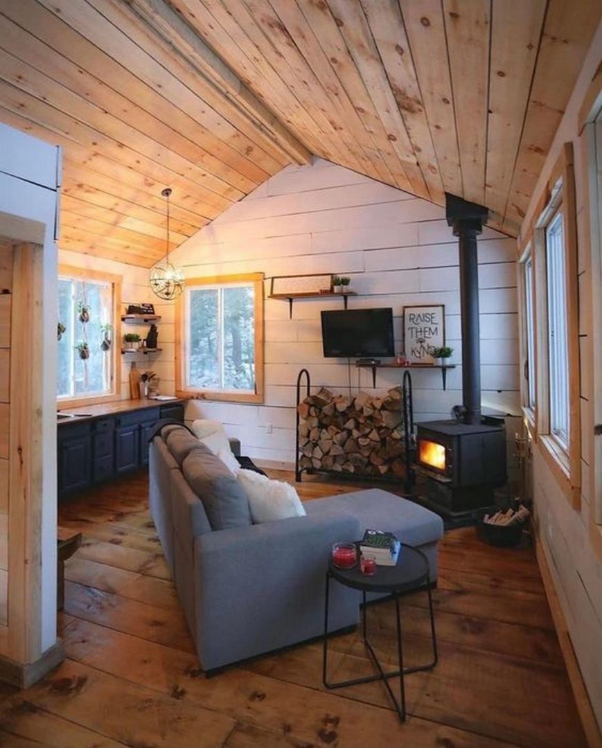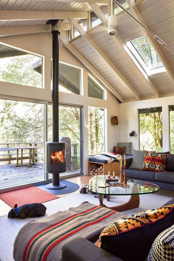 Create a focal point in the living area with a rustic fireplace. Consider using stacked stone or reclaimed wood for the surround.