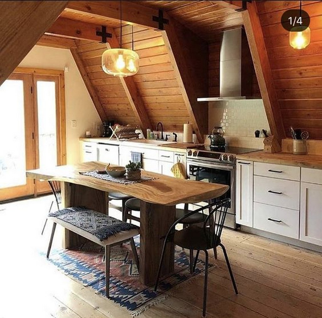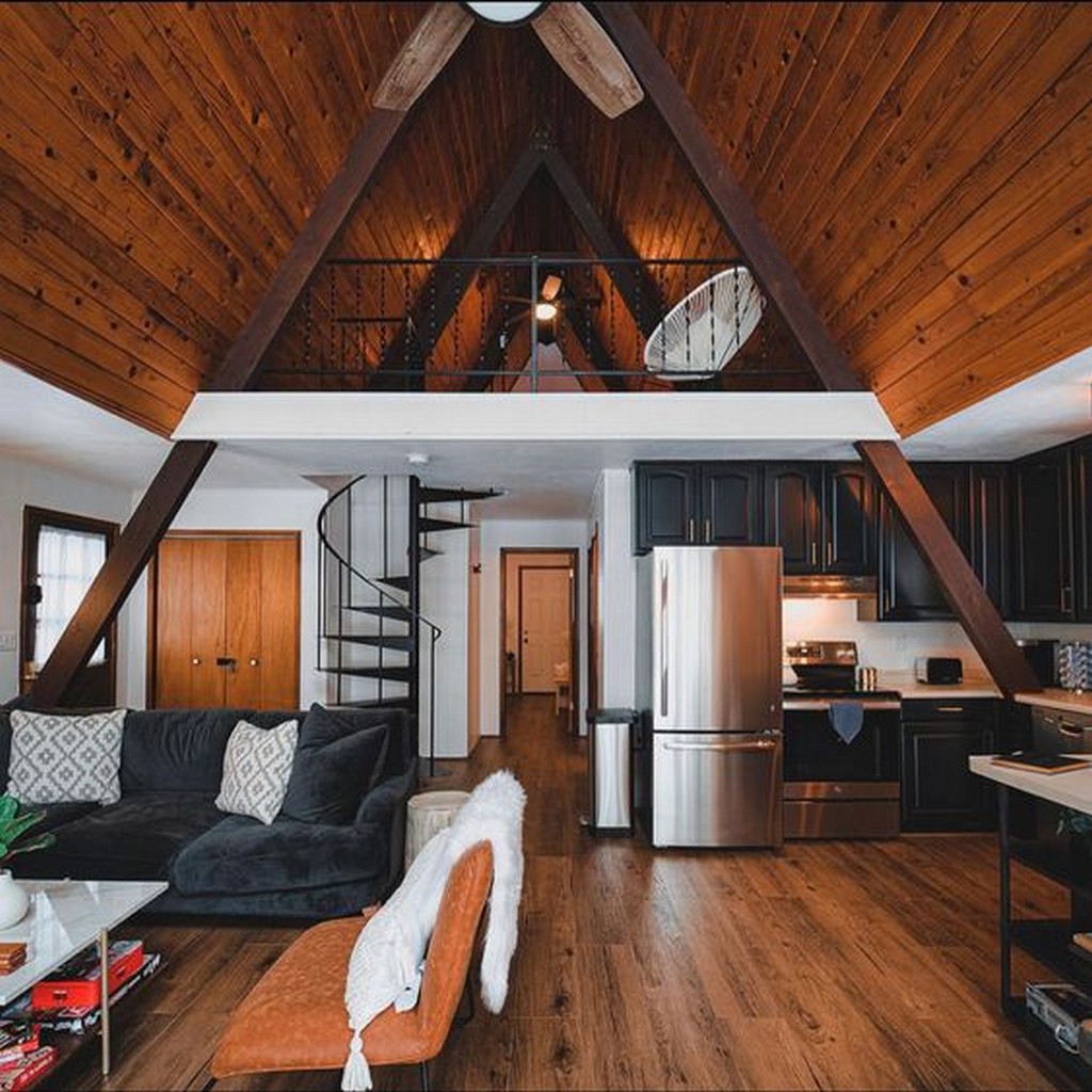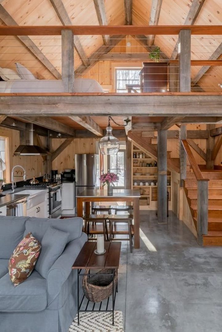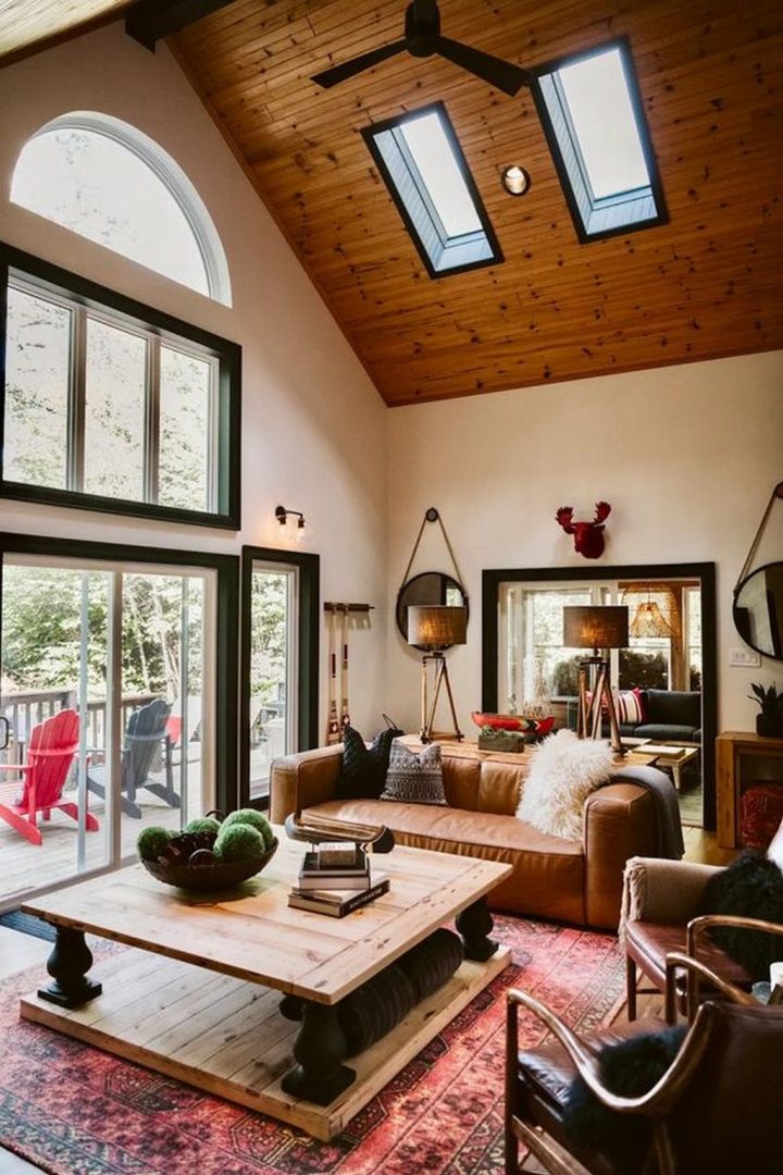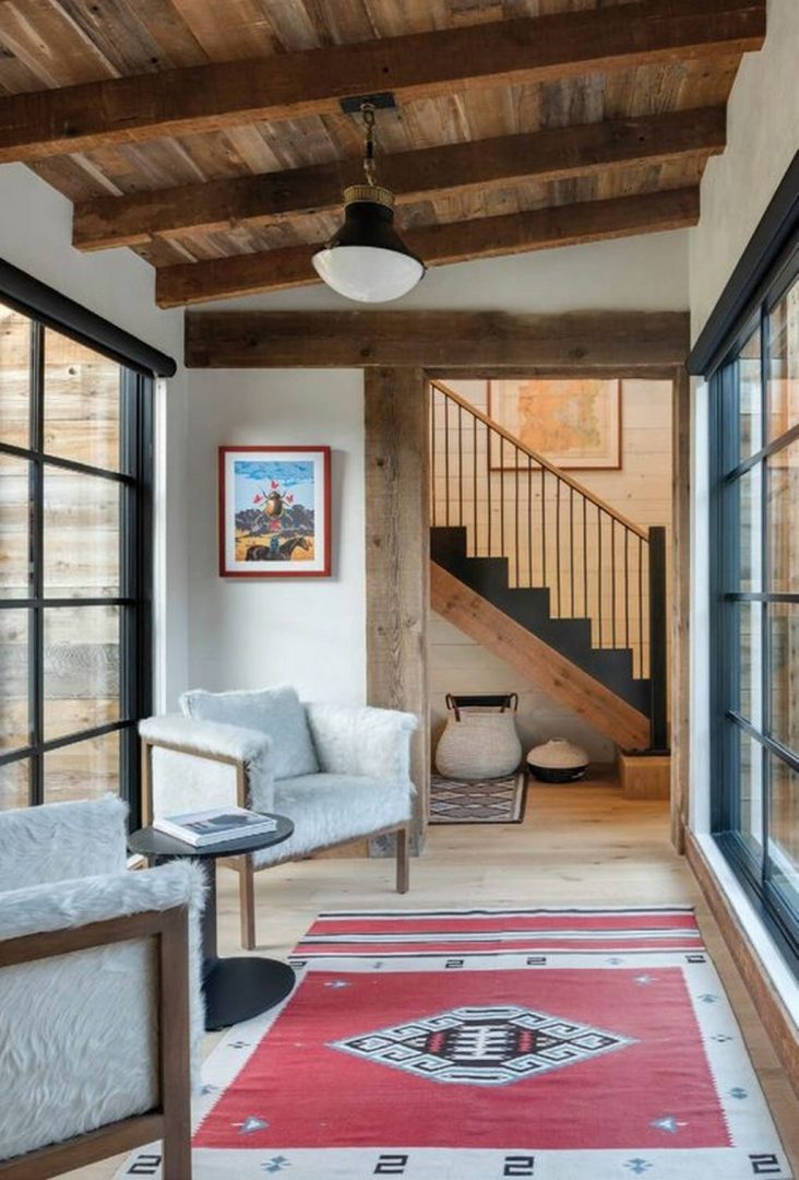 Design vaulted ceilings with exposed wooden beams to enhance the rustic feel. This architectural element adds character and visual interest.