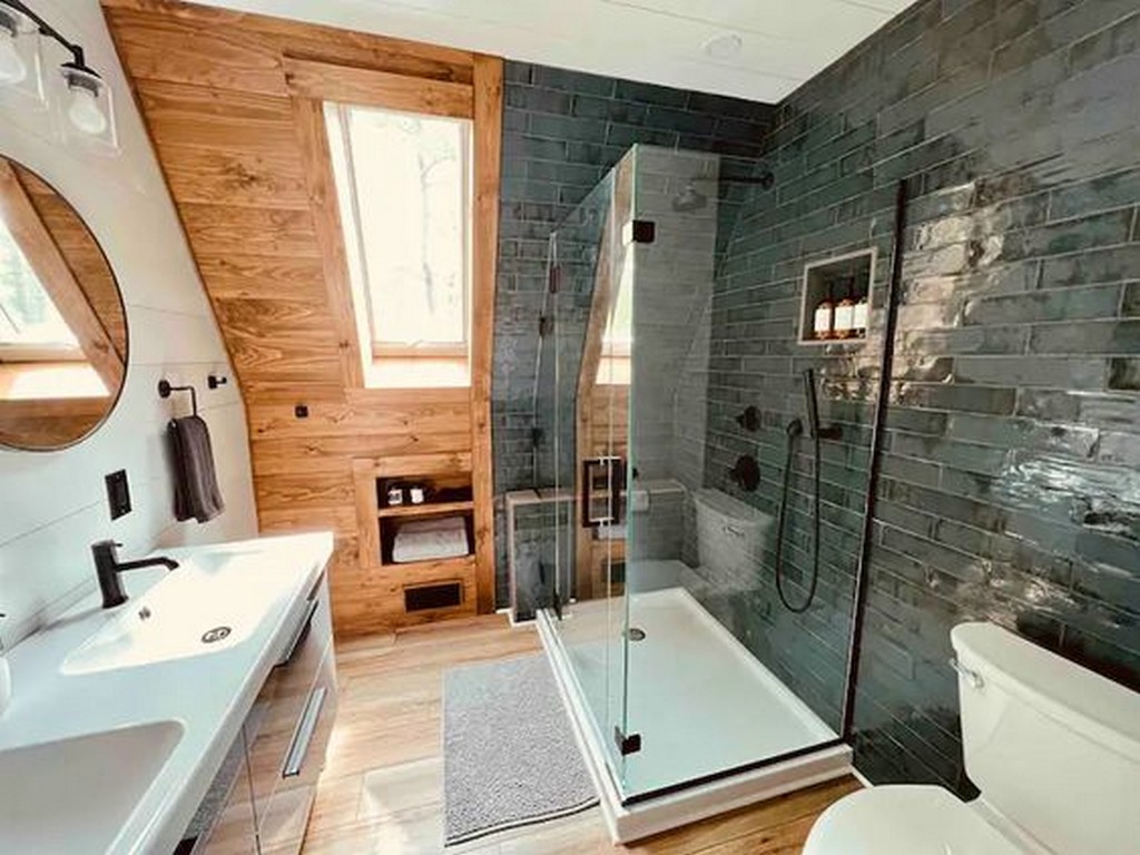 Design a sleek and modern bathroom with clean lines and contemporary fixtures. Consider a walk-in shower with glass doors for a modern and open feel.
