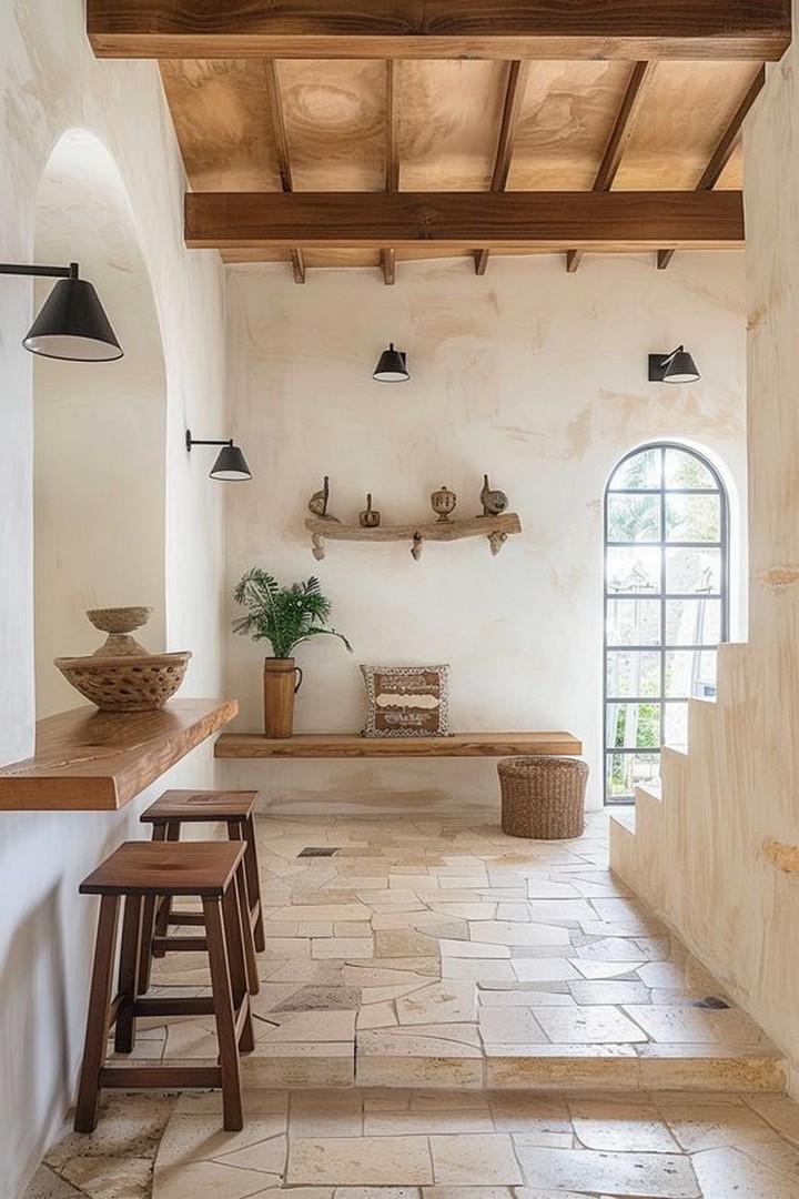 Bringing a touch of the Mediterranean to a tiny cabin, these interiors feature warm colors, rustic accents, and natural materials that evoke the feeling of a seaside villa.