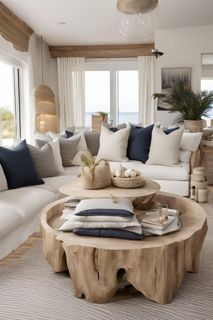 Tiny cabins with a nautical theme often feature a blue and white color palette, rope accents, and maritime-inspired décor. These interiors evoke a sense of coastal living and relaxation.