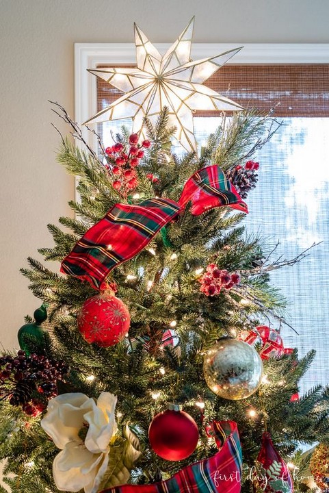 A large, decorative ribbon bow can be a simple yet elegant choice for a tree topper. You can use a bow made from a variety of materials and colors to match your tree’s theme.