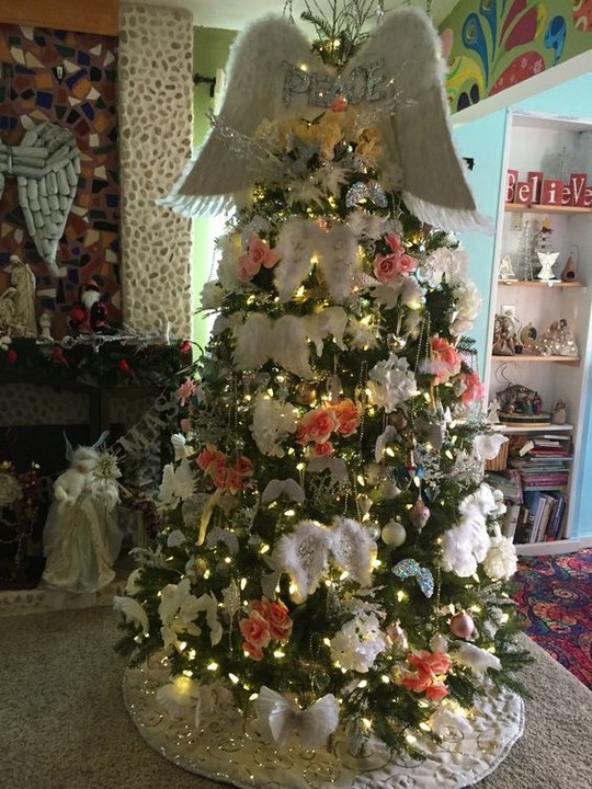 An angel tree topper is another traditional and religious option. It’s often a porcelain or fabric angel figurine with wings, dressed in a white or ivory gown.
