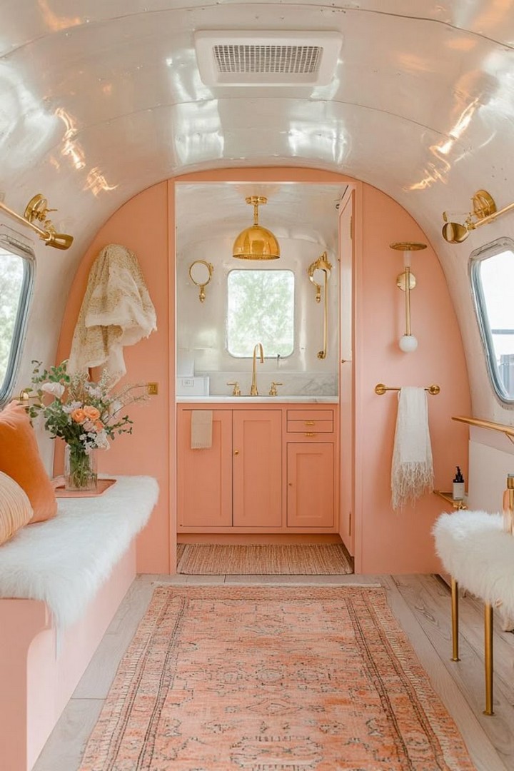 Desert modernism translates the stark beauty of arid landscapes into interior aesthetics. The color palette mimics desert environments with sandy neutrals, terracotta, and subtle sage greens. Natural and heat-resistant materials like leather, terra cotta, and sustainable woods create a connection to desert environments. Geometric patterns might reference Indigenous desert art or abstract desert landscapes. The aesthetic balances warmth and coolness, creating spaces that feel protected from imaginary heat while remaining open and minimal. These conversions particularly suit travelers who frequent desert regions and want their interior to harmonize with these landscapes.