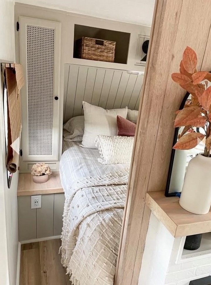 Art-focused minimalism creates gallery-like spaces where select meaningful artwork becomes the focal point. Clean, neutral backgrounds allow art pieces to command attention without competition. Art integration might include rotating display systems to allow travelers to change their visual environment without adding clutter. Lighting is carefully planned to showcase art pieces effectively. These conversions demonstrate that minimalism doesn’t mean abandoning self-expression—rather, it creates space for intentional expression through carefully chosen pieces that carry significant personal meaning.