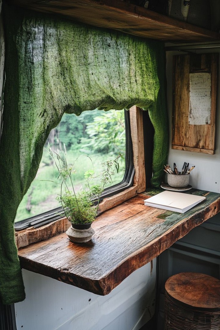 Organic minimalism emphasizes natural forms, materials, and connections to the outdoor environment. Curved lines replace rigid geometry, creating a sense of flow throughout the space. Materials maintain their natural character and are often locally sourced. The color palette draws directly from nature, with forest greens, sky blues, and earthy browns creating a seamless transition between outdoor environments and the van interior. Large windows or strategic skylights blur boundaries between inside and outside. These conversions particularly appeal to nature enthusiasts who want their interior space to complement rather than contrast with the landscapes they explore.
