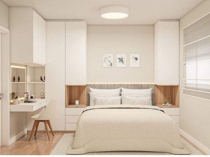 This approach works particularly well in smaller bedrooms where visual simplicity creates a sense of spaciousness and tranquility.