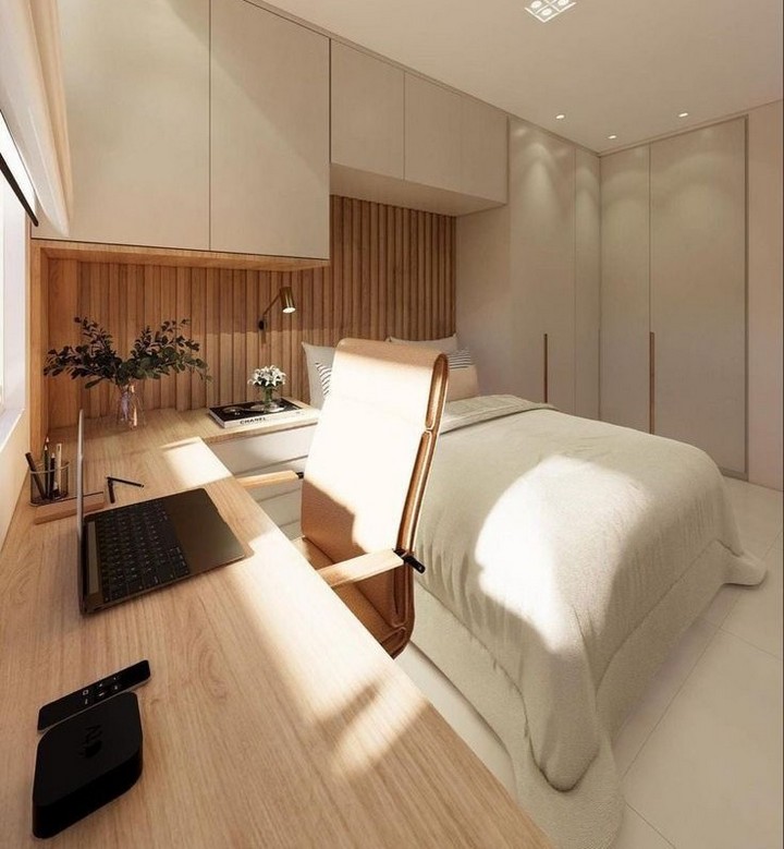 Among the top trends redefining contemporary interior design is the integration of built-in cabinets and wood accents in bedroom spaces. This approach not only optimizes storage and layout but also elevates the room’s overall visual appeal.
