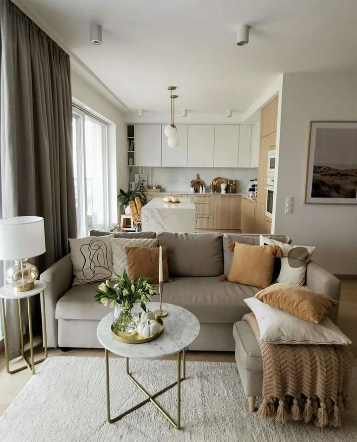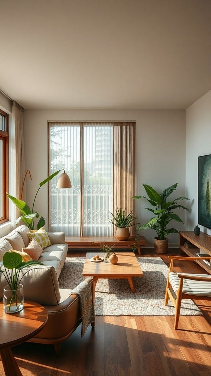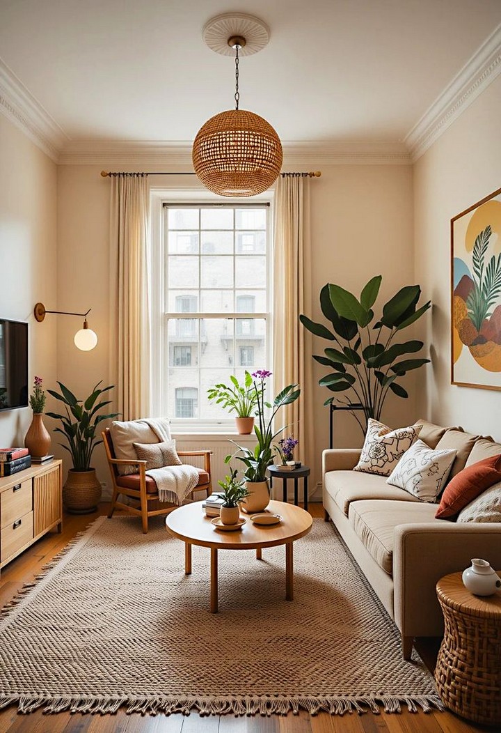 Incorporate light wood finishes, textural layering with throws and cushions, and furniture with tapered legs allowing light flow underneath. Add strategic greenery and embrace the hygge philosophy of creating intimate, comfortable spaces perfect for smaller living rooms.