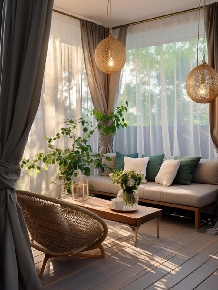 Hang curtains from ceiling to floor, even if windows are smaller. This vertical treatment draws the eye upward and creates an illusion of higher ceilings. Choose lightweight fabrics in colors matching your walls for a seamless, expansive look.