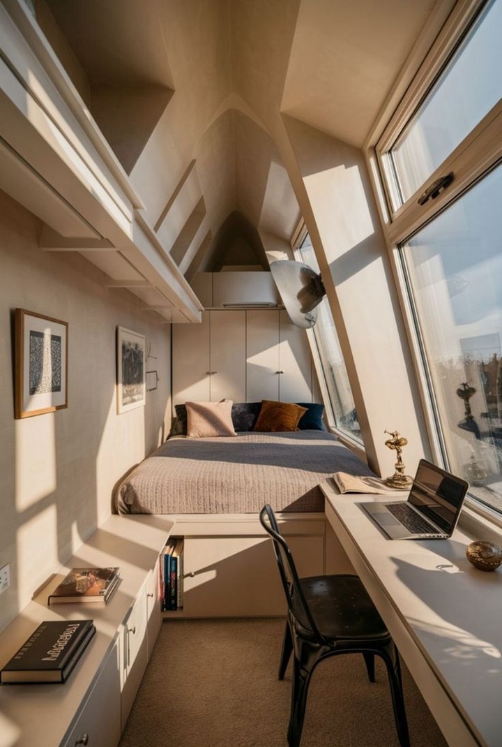 Utilize the space beneath windows with a simple bench that creates both seating and a display surface. This traditional Scandinavian feature transforms an often underused area into a functional element that enhances the room’s flow.