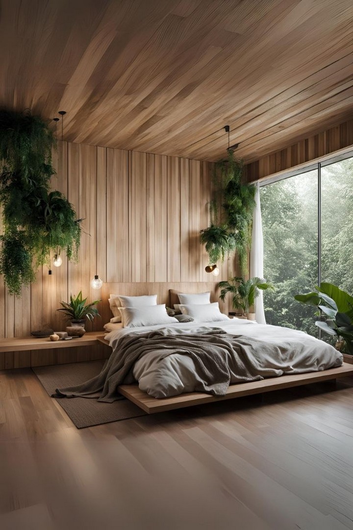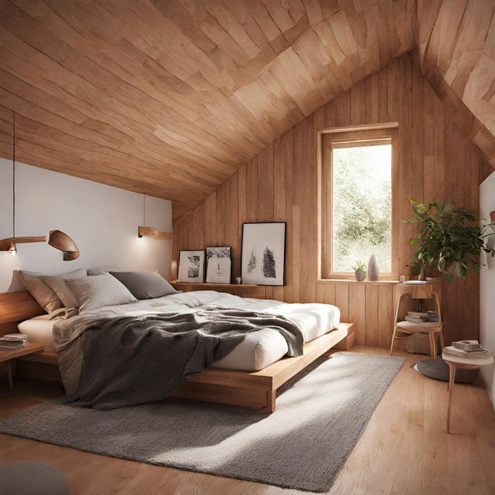 Embrace the authentic cabin feel with exposed wood walls in your bedroom. Traditional Scandinavian cabins (or “hytte” in Norwegian) feature walls made from local timber species like pine, spruce, or birch. These can be left in their natural state, whitewashed for a brighter appearance, or treated with natural oils to enhance the wood grain.