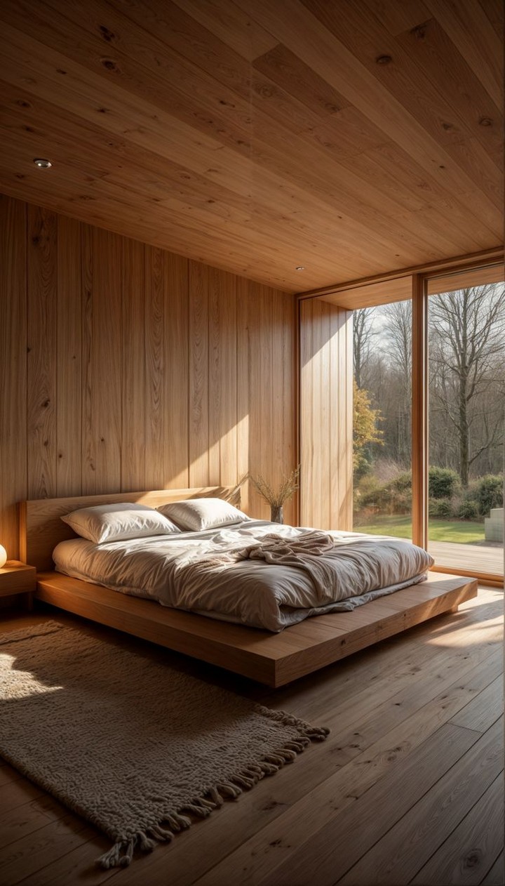 Choose a bed frame that sits closer to the floor, creating a grounded, protective feeling perfect for a cabin retreat. Traditional Scandinavian beds were often built this way for practical reasons lower beds are easier to keep warm in cool environments.