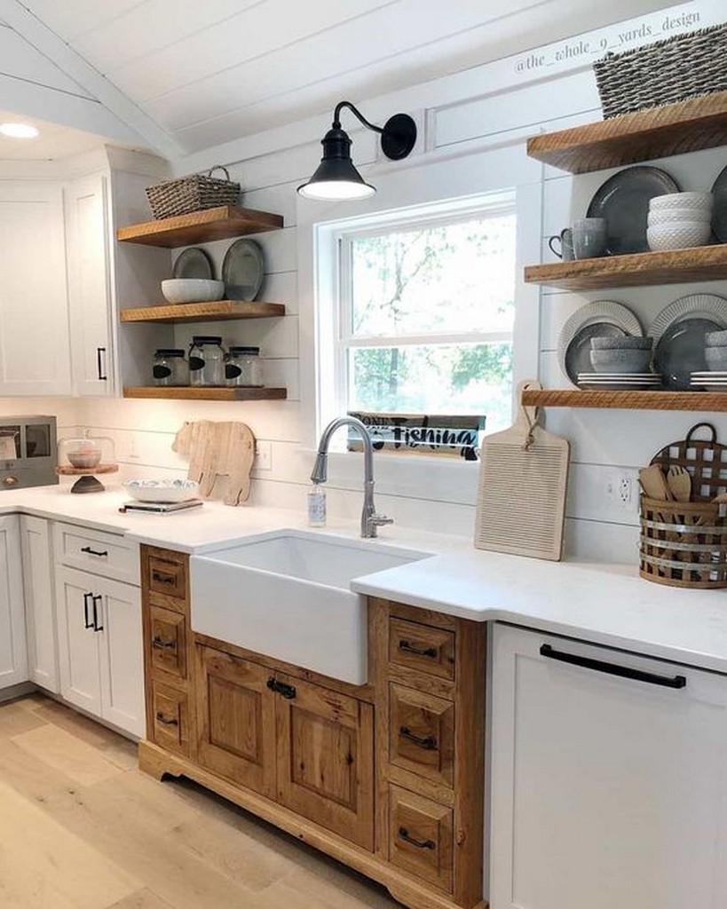 Choose a farmhouse sink as a focal point. It not only adds a touch of vintage charm but also provides ample space for various kitchen tasks.