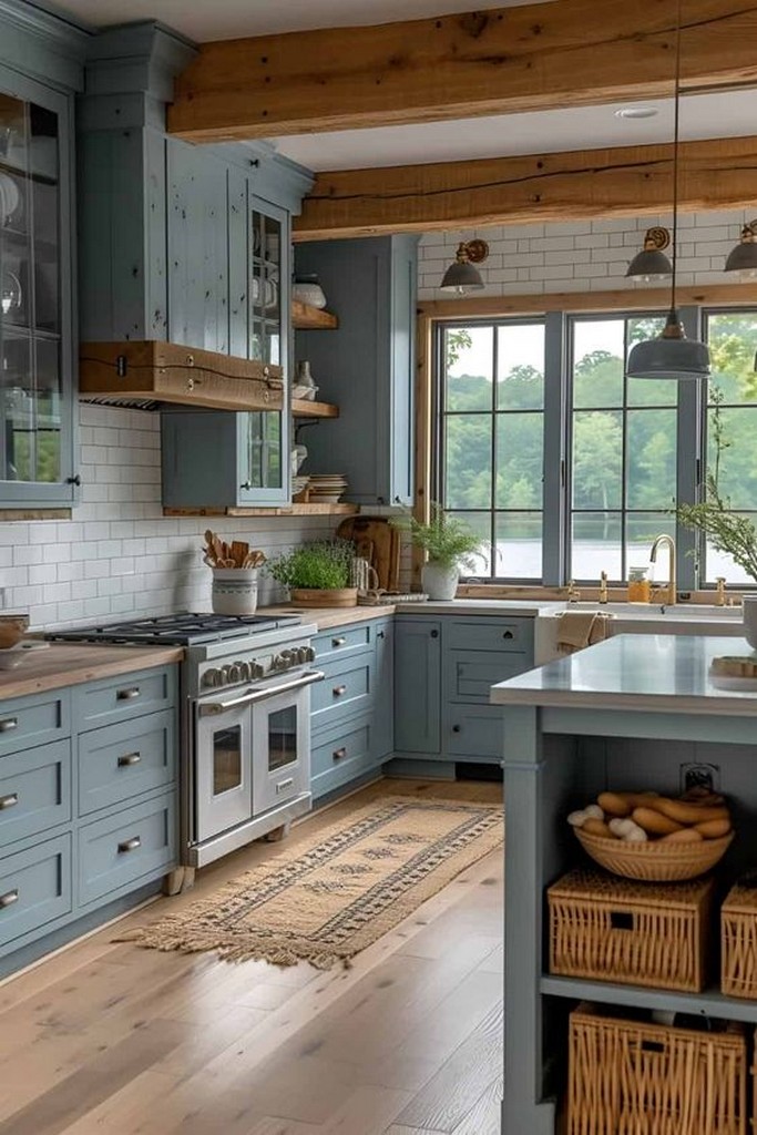 Opt for weathered or distressed cabinets to enhance the rustic feel. This style complements the barn aesthetic and adds character to the kitchen.