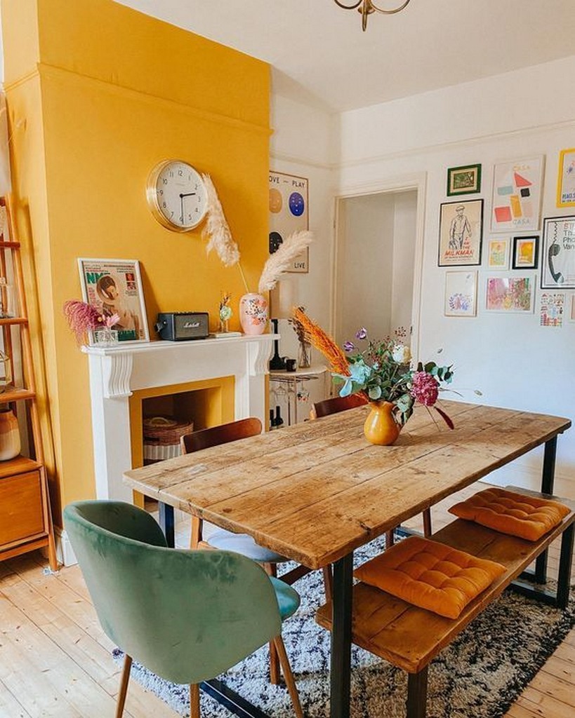Use mismatched chairs around the dining table for an eclectic and bohemian touch. This adds personality and breaks up the uniformity.