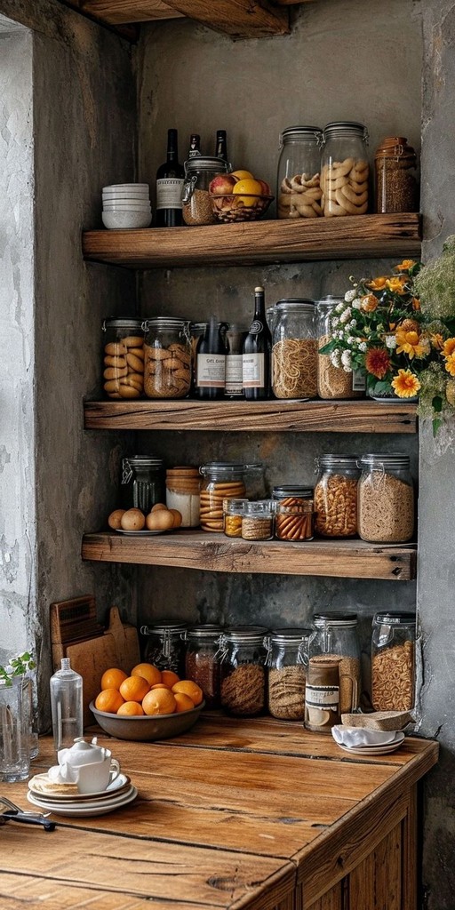 Install open shelving made from reclaimed wood for a rustic and practical storage solution. This can showcase your dishware and add character to the kitchen.