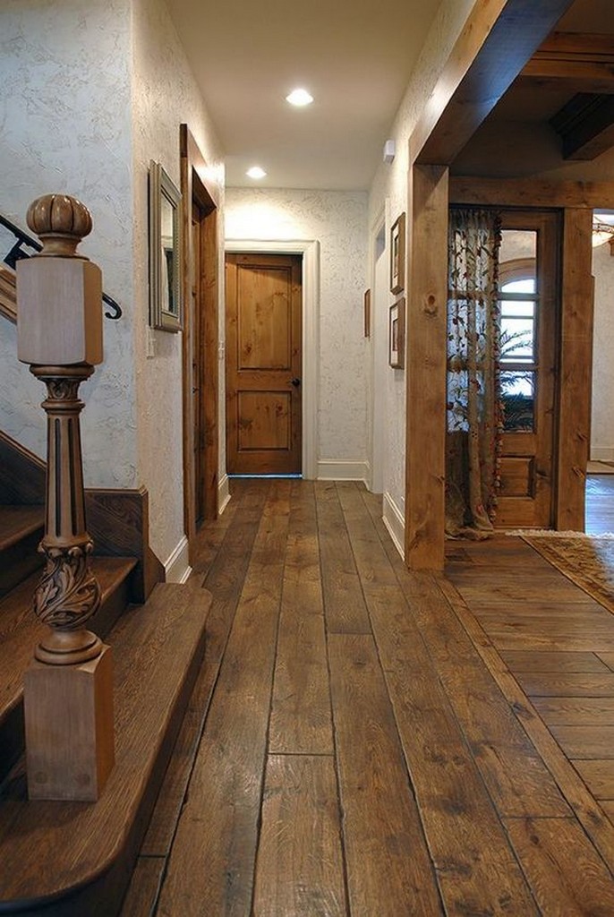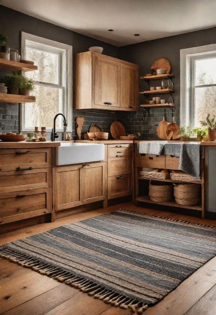 Choose hardwood flooring for a classic and timeless look. This material adds warmth and complements the rustic design.
