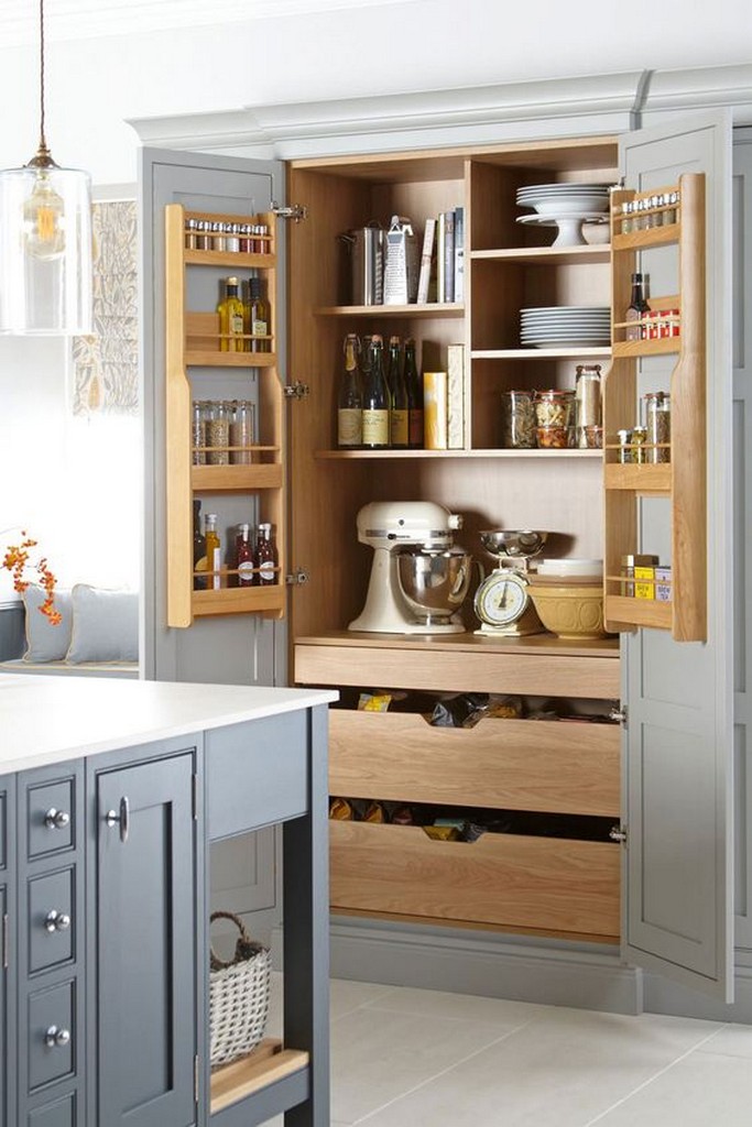 Implement smart storage solutions, including pull-out pantry shelves, deep drawers, and built-in organizers, to maximize the functionality of the kitchen.
