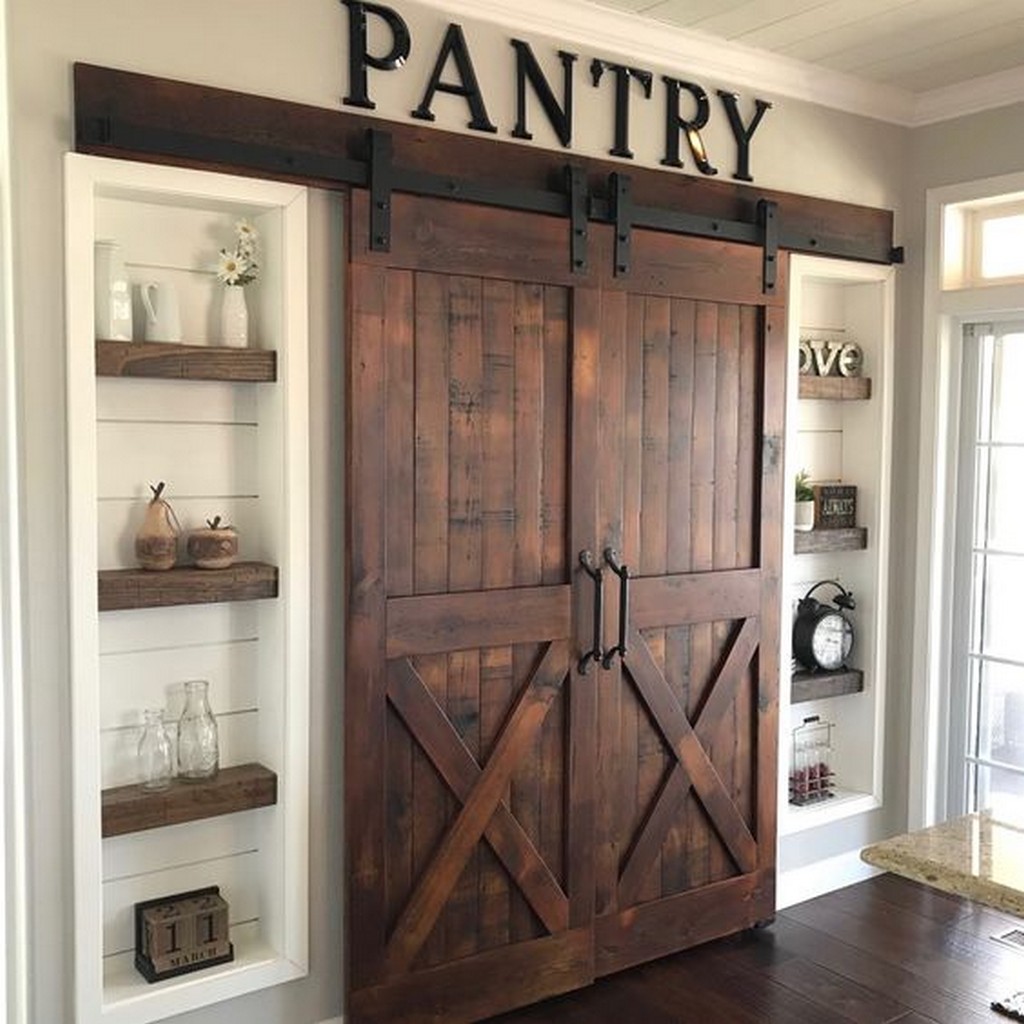 Use a sliding barn door to conceal a pantry or storage area. This adds a rustic touch while maximizing space and maintaining an open feel.