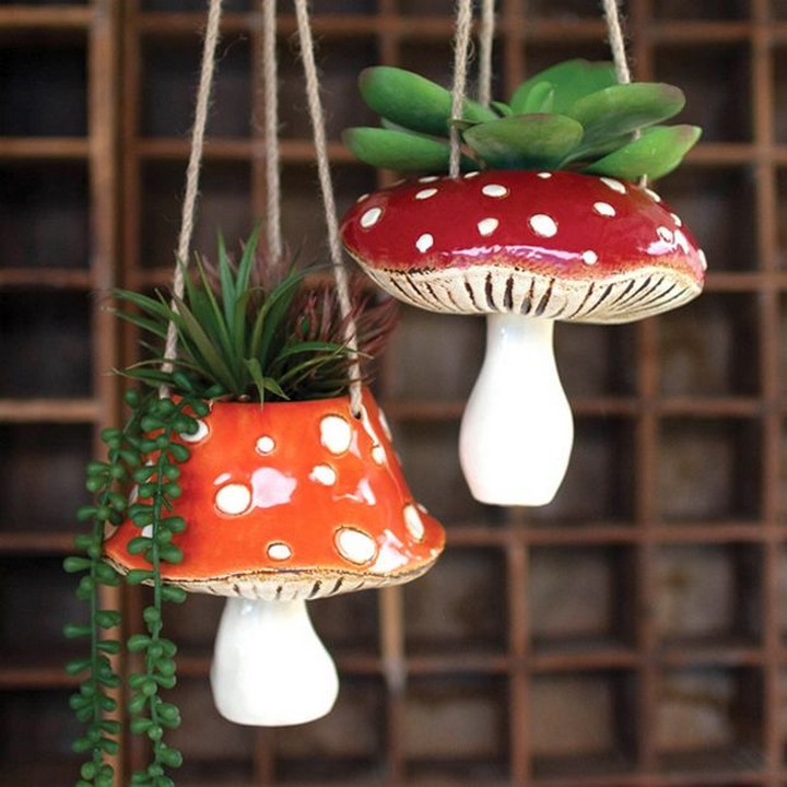 Repurposed ceramic colanders make charming hanging planters with built-in drainage. These vintage-inspired pieces add character to cottage-style or eclectic décor.