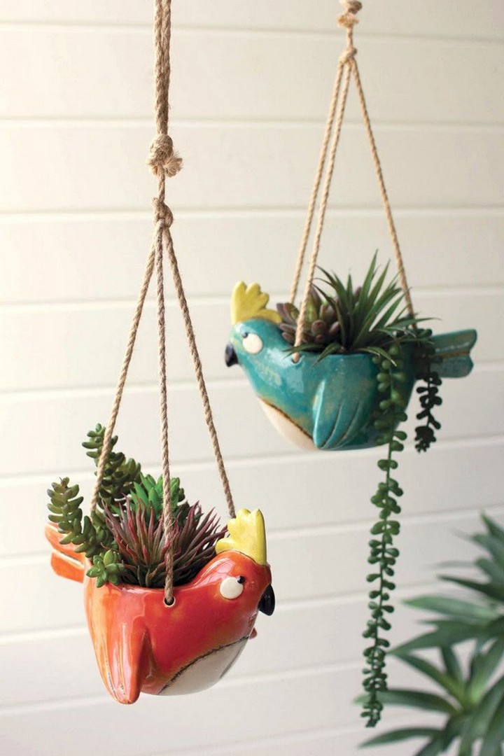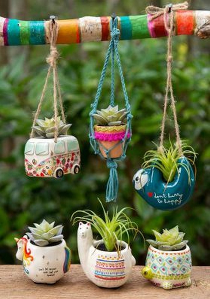 Consider the weight capacity of your hanging system when selecting plants. Ceramic planters are heavier than plastic alternatives, so factor in the additional weight of soil and water when planning your installation. Choose plants with similar light and water requirements if grouping multiple planters together.